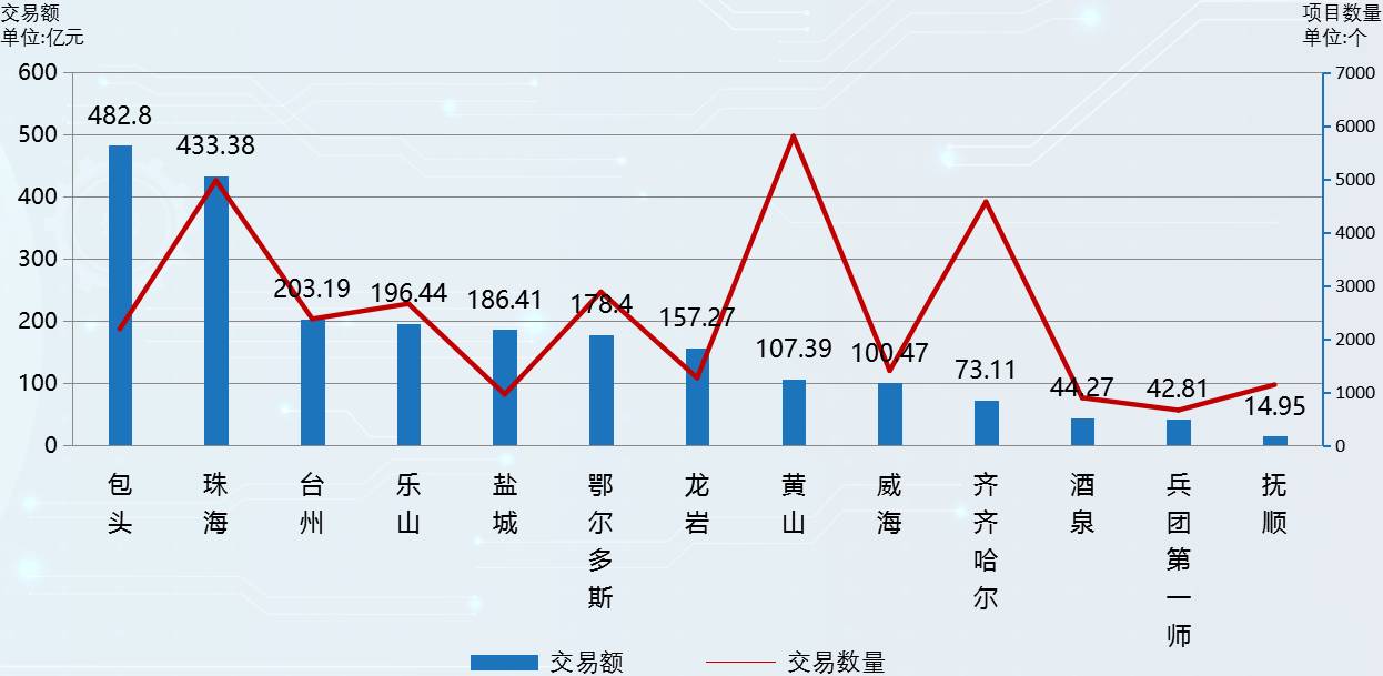 2017年1月至9月公共资源交易数据统计,共包含24个市级交易平台的交易数据,其中副省级、省会城市公共资源交易平台共11个。