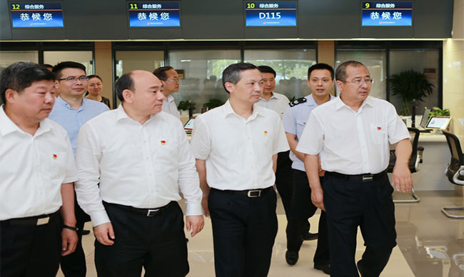 日前,北京市委常委、市纪委书记、北京市监察委员会主任张硕辅带队一行8人,在海淀区委书记崔述强、纪委书记肖韵竹等领导陪同下,到海淀区综合行政服务中心调研。张书记一行实地查看了政务大厅环境及双创服务区、国地税联办窗口和业务监控平台等各项服务、管理设施,了解了大厅功能设置及运行情况和对外服务窗口业务开展情况等。实地考察结束后,市纪委领导与海淀区部分单位代表就以“疏解整治促提升”专项行动为抓手,推进“为官不为、为官乱为”问题专项治理和“严肃查处群众身边的不正之风和腐败问题”专项工作进行了交流座谈。